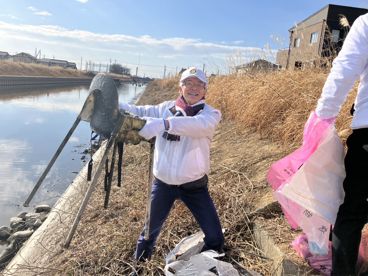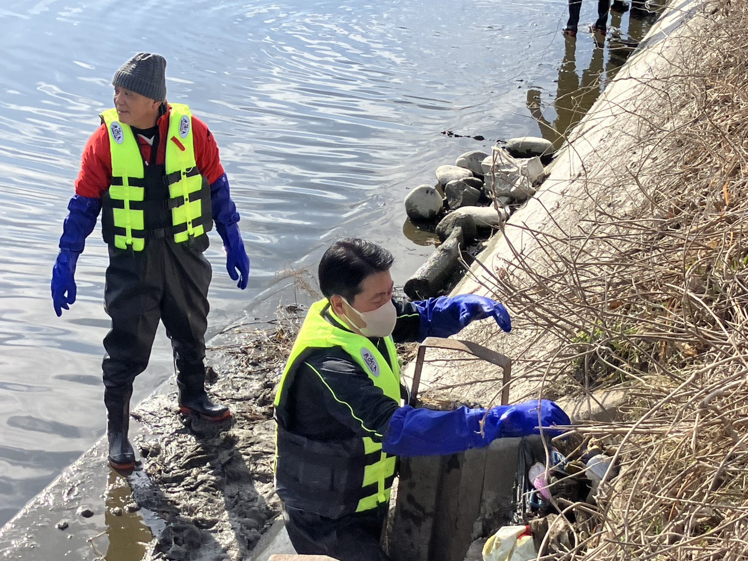 浅そうに見える川も場所によって底なし沼のようなヘドロが堆積、足を取られながらも次々と大物のゴミをゲット。獅子奮迅の活躍です。