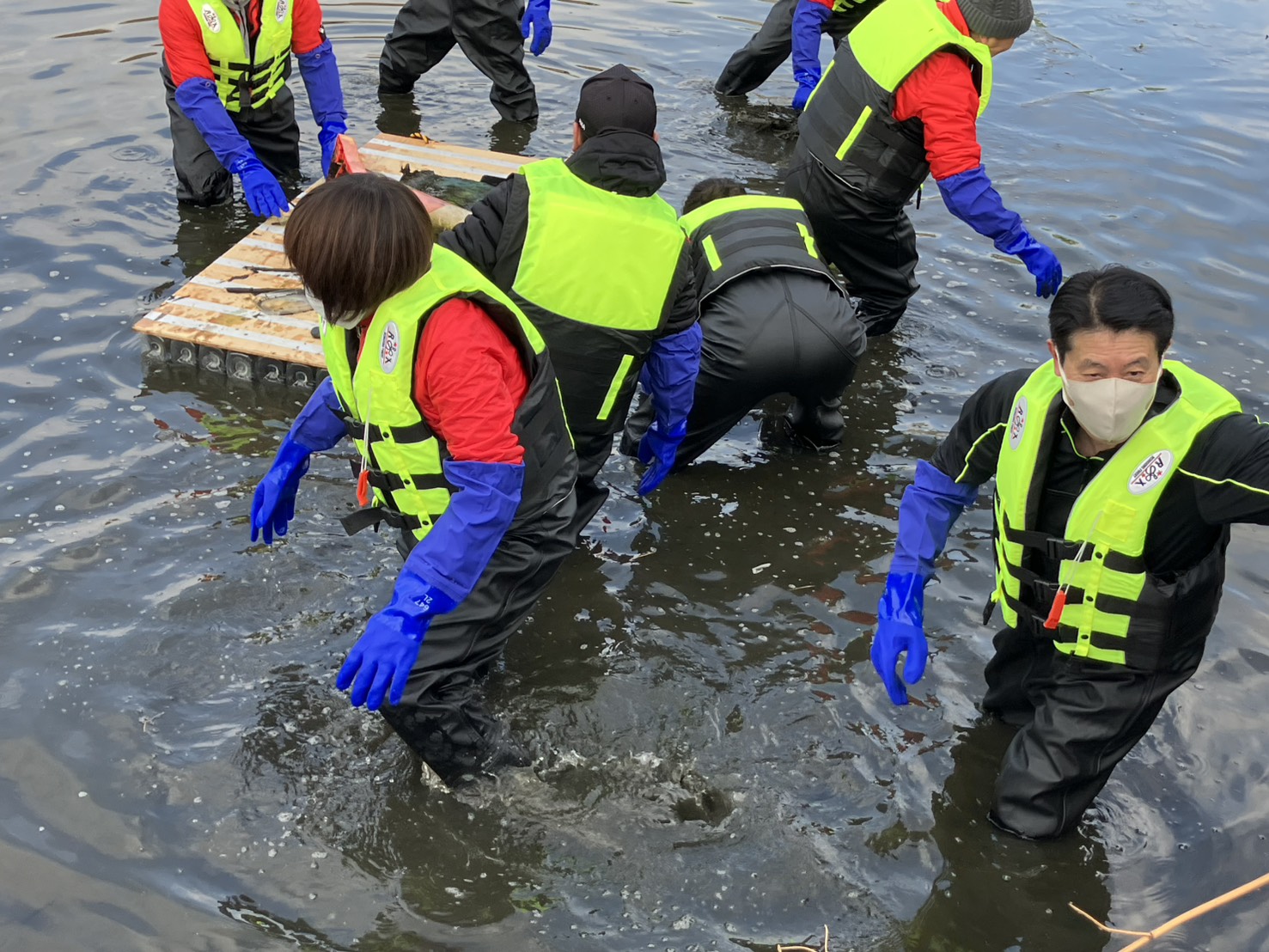 ▲ ヘドロの中から大型ゴミを回収
