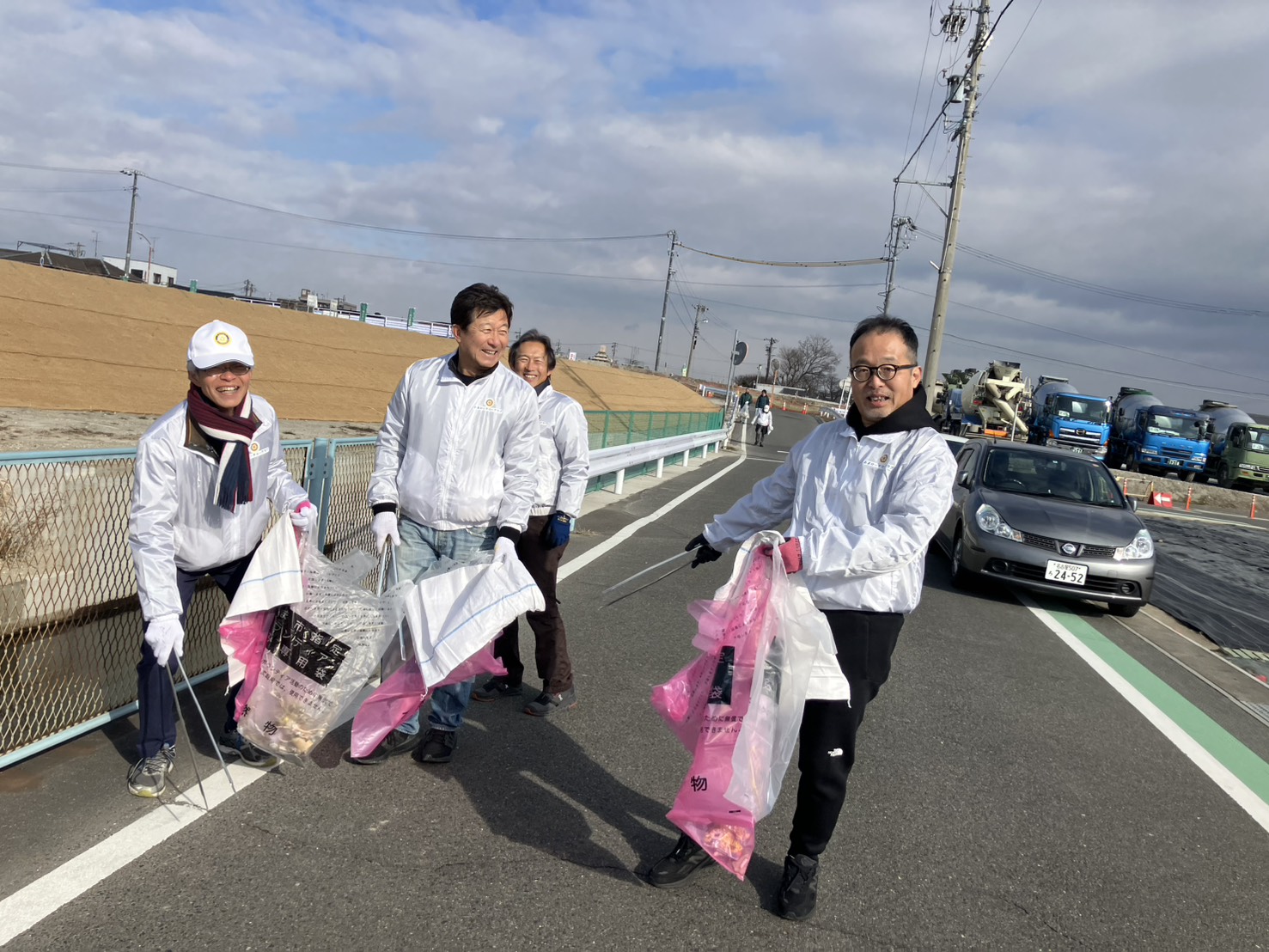 ゴミ拾いを終えて集合場所である大嶽名西生コン工場に戻ると、かしの木会の方々から温かい豚汁やおにぎりをいただき、ほっと一息。とても清々しい気持ちでいっぱいになりました。